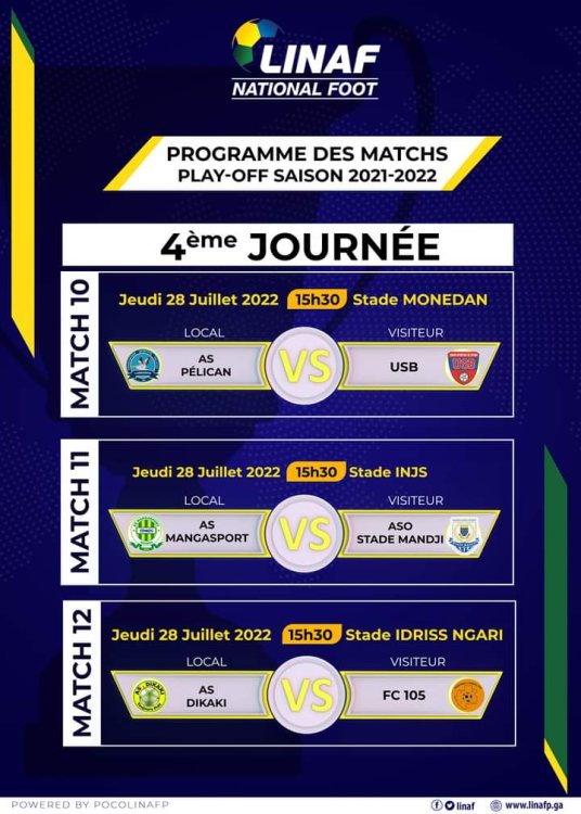 Le championnat national de première division de football du Gabon tire à sa fin. Ce lundi 25 juillet se jouait la 3e journée de la dernière étape des play-offs avant de connaître le vainqueur au soir du 31 juillet 2022.