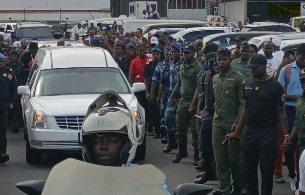 À 14h45, le cortège funèbre s’est ébranlé en direction du Centre hospitalier universitaire d’Owendo. Tout au long du trajet, des patriotes, en nombre, ont bordé les avenues pour rendre un ultime hommage à celui qui fit vibrer tout un peuple.